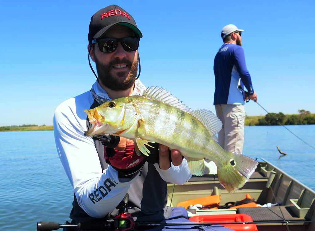No primeiro dia pescamos nos pontos próximos a pousada e com insistência tivemos boas ações na parte da manhã, de peixes pequenos, porém bateram nas iscas de superfície. Víamos o peixe atacando, arremessávamos e eles pegavam, foi basicamente assim que tivemos as capturas nesse dia.