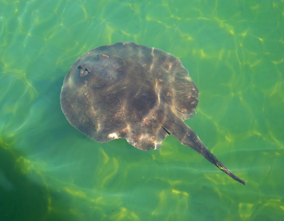 Encontramos uma grande arraia nadando tranquilamente quase que na superfície: