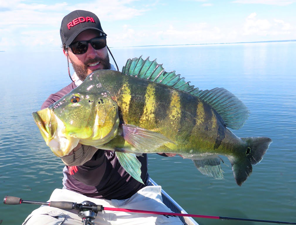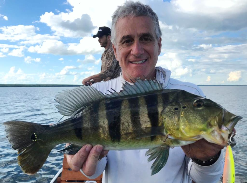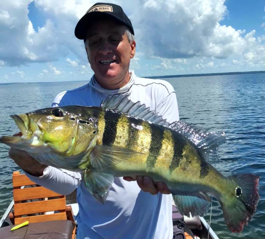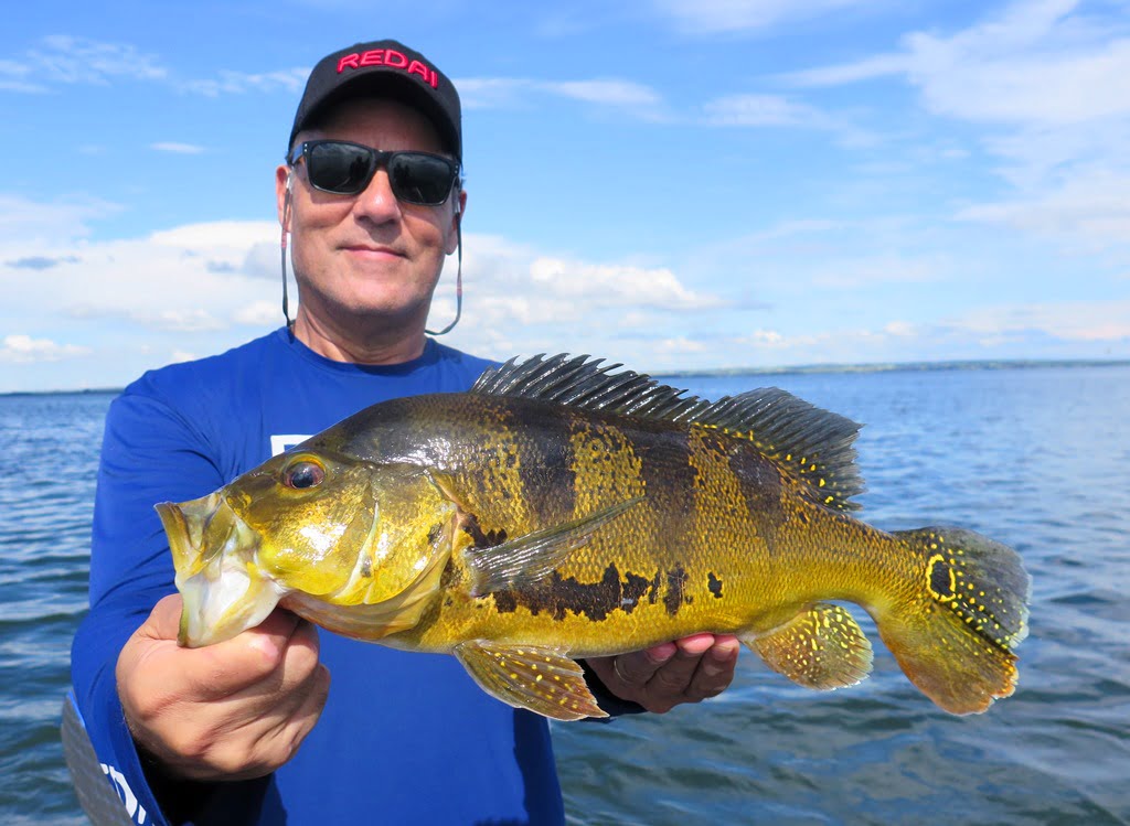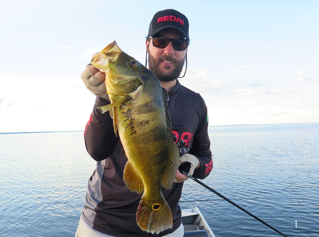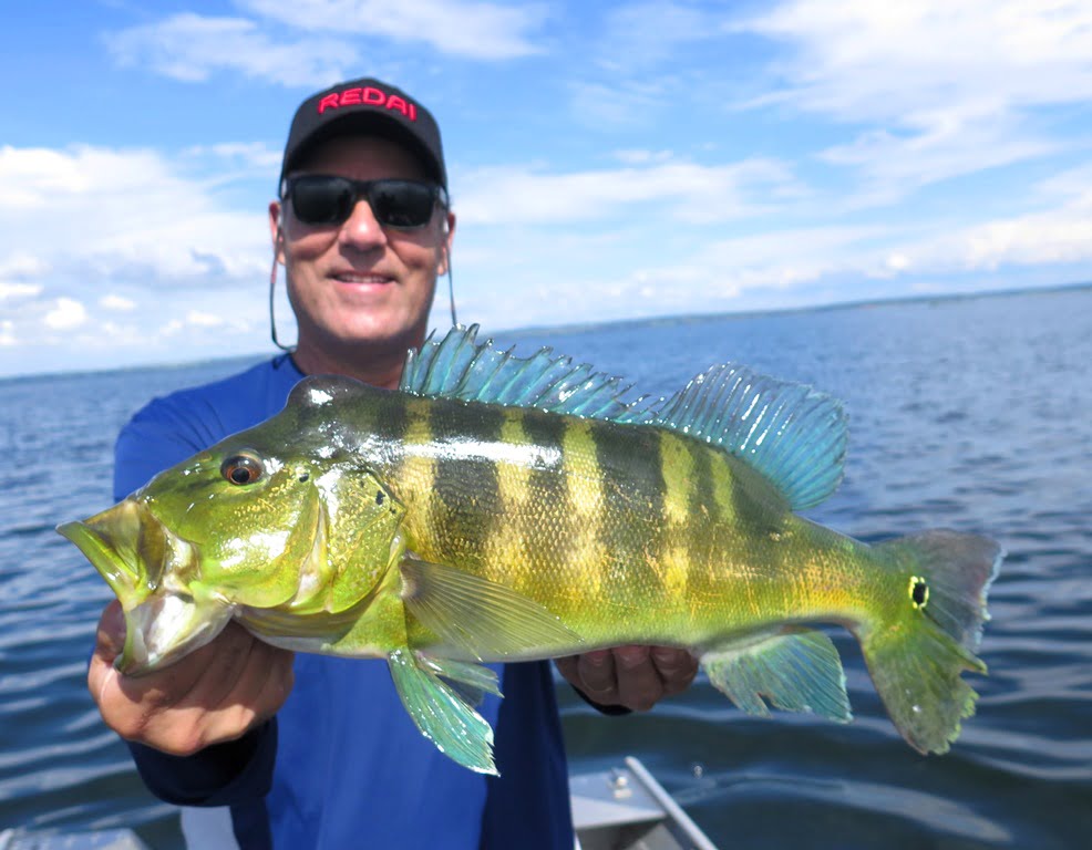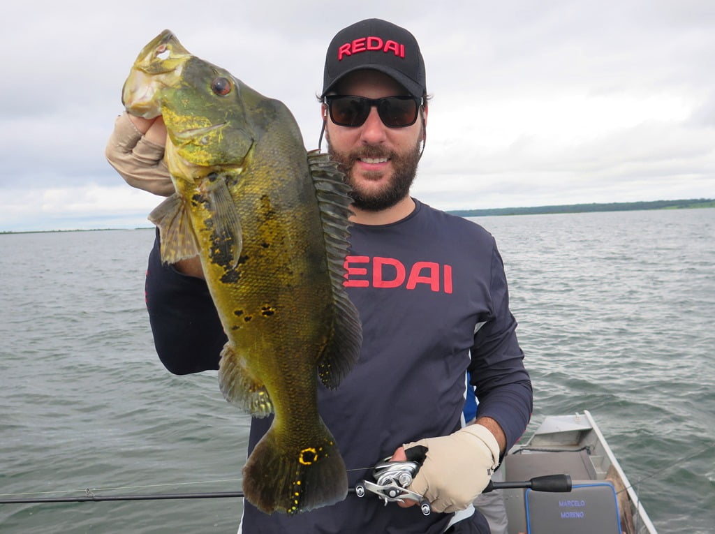 Muitos peixes, mas estava faltando o meu troféu, o guia Marcelo não mediu esforços para achar ele, até que fui abençoado com um grande tucunaré azul para coroar a pescaria: