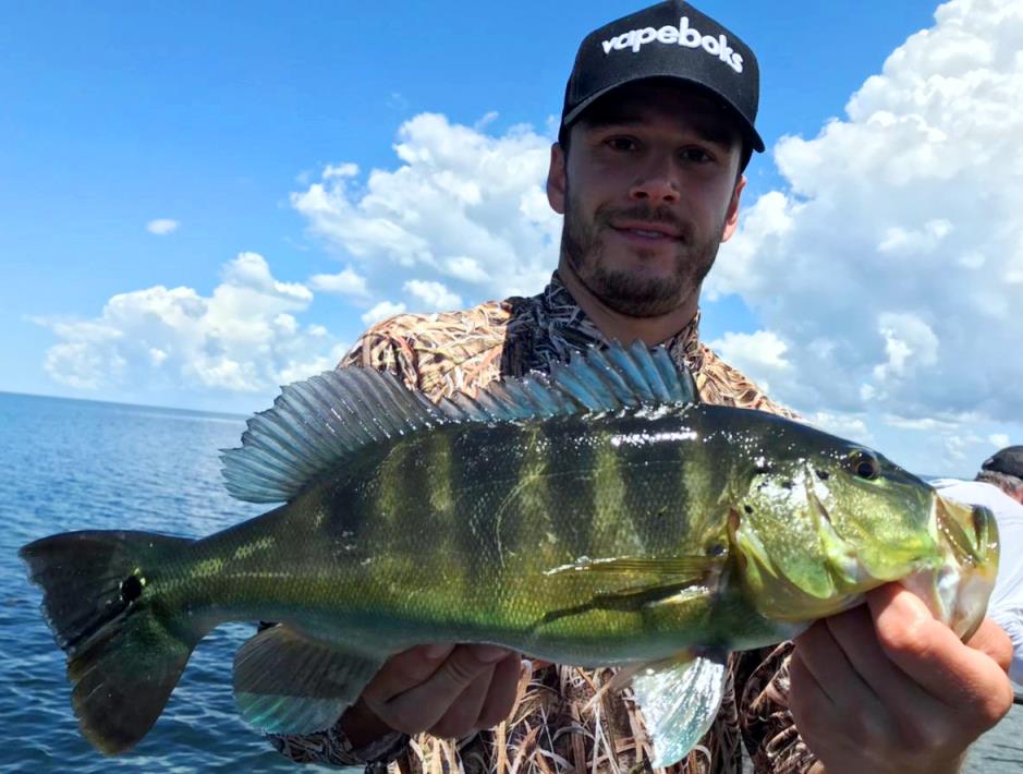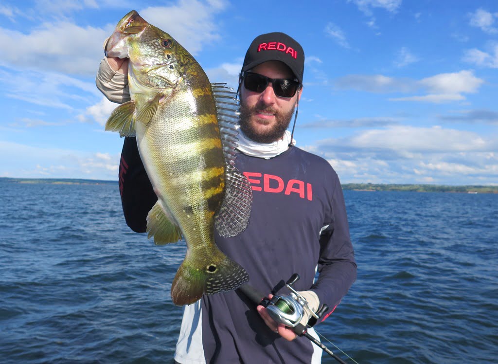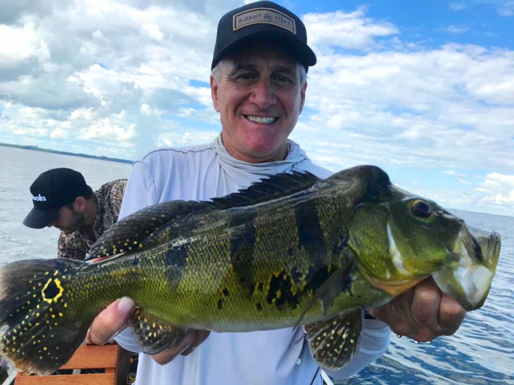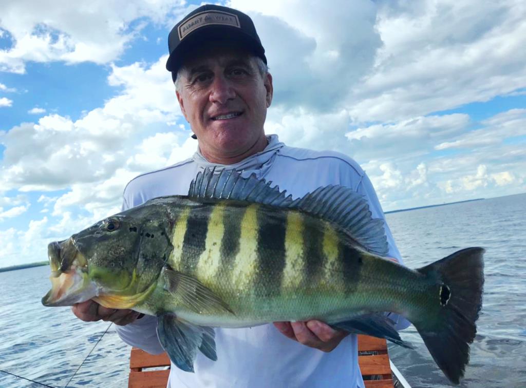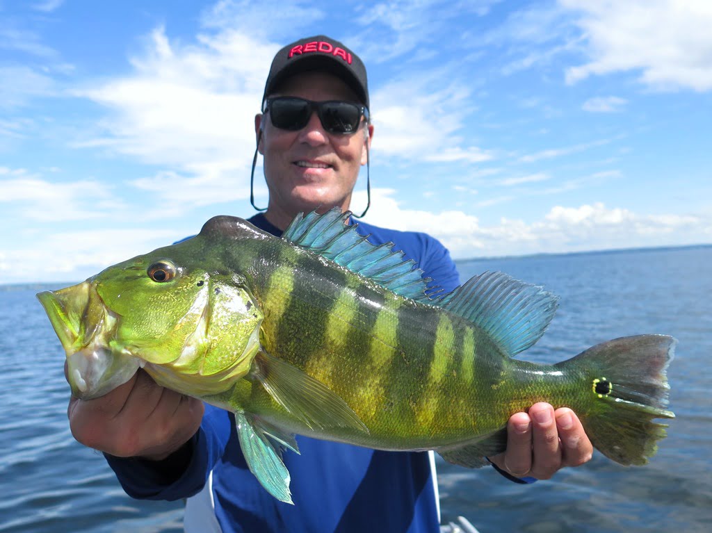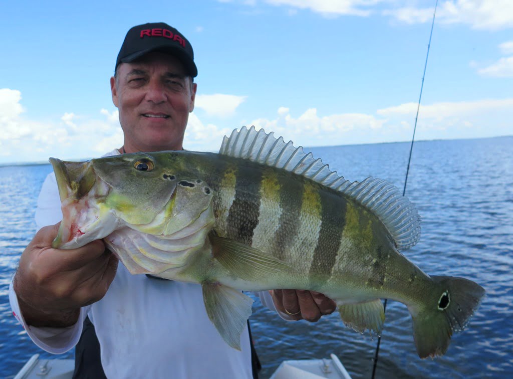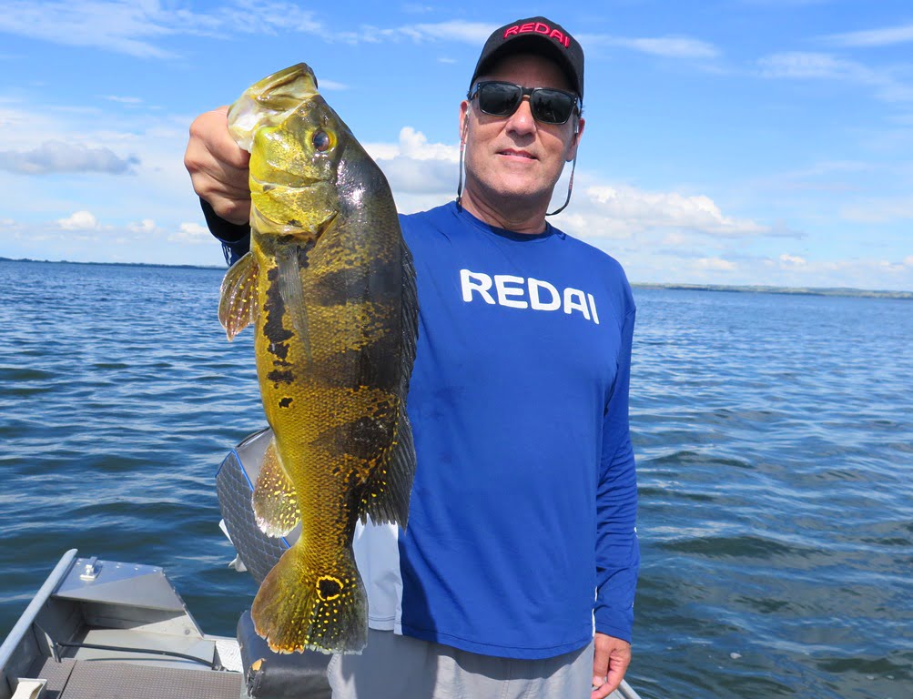 Muitos peixes, mas estava faltando o meu troféu, o guia Marcelo não mediu esforços para achar ele, até que fui abençoado com um grande tucunaré azul para coroar a pescaria:
